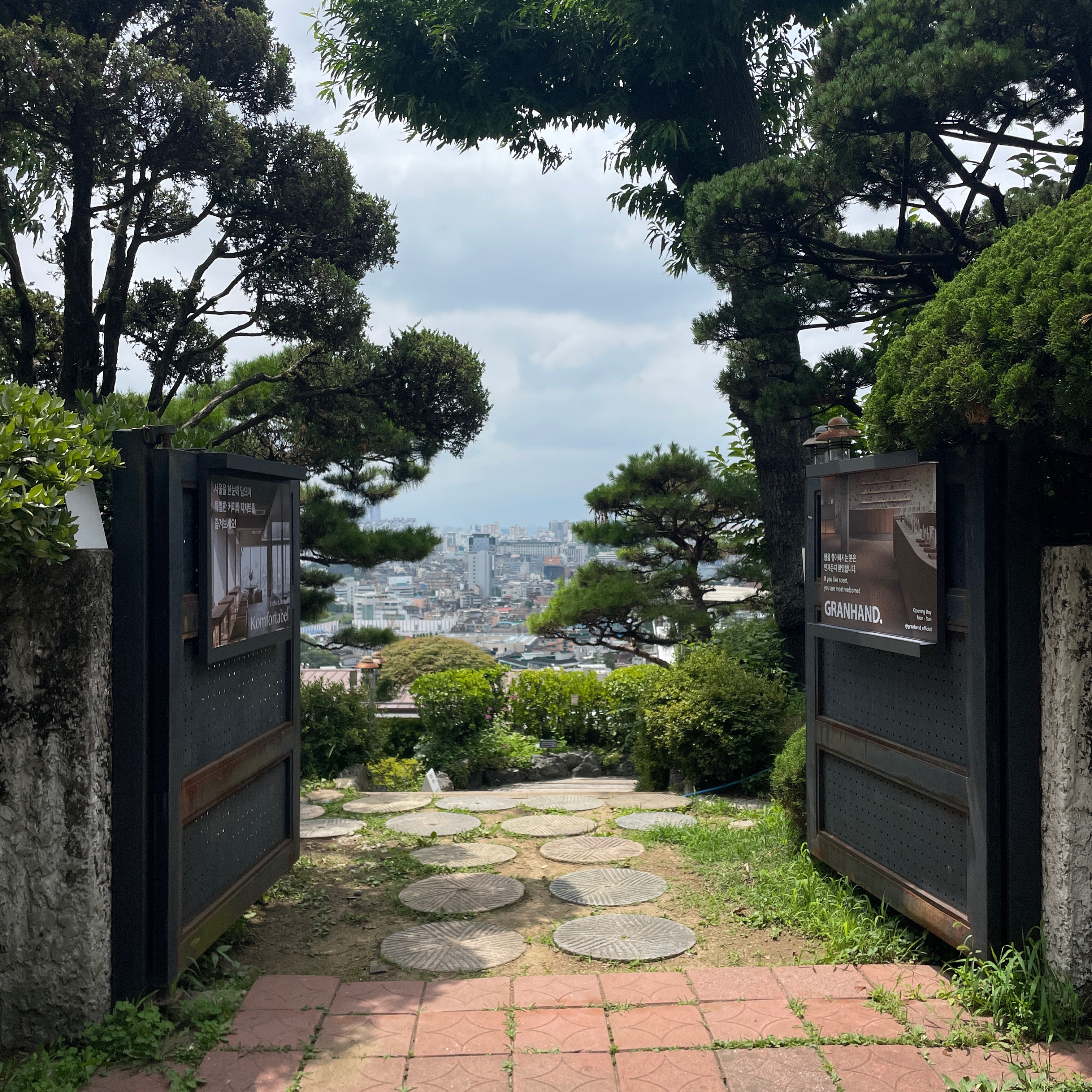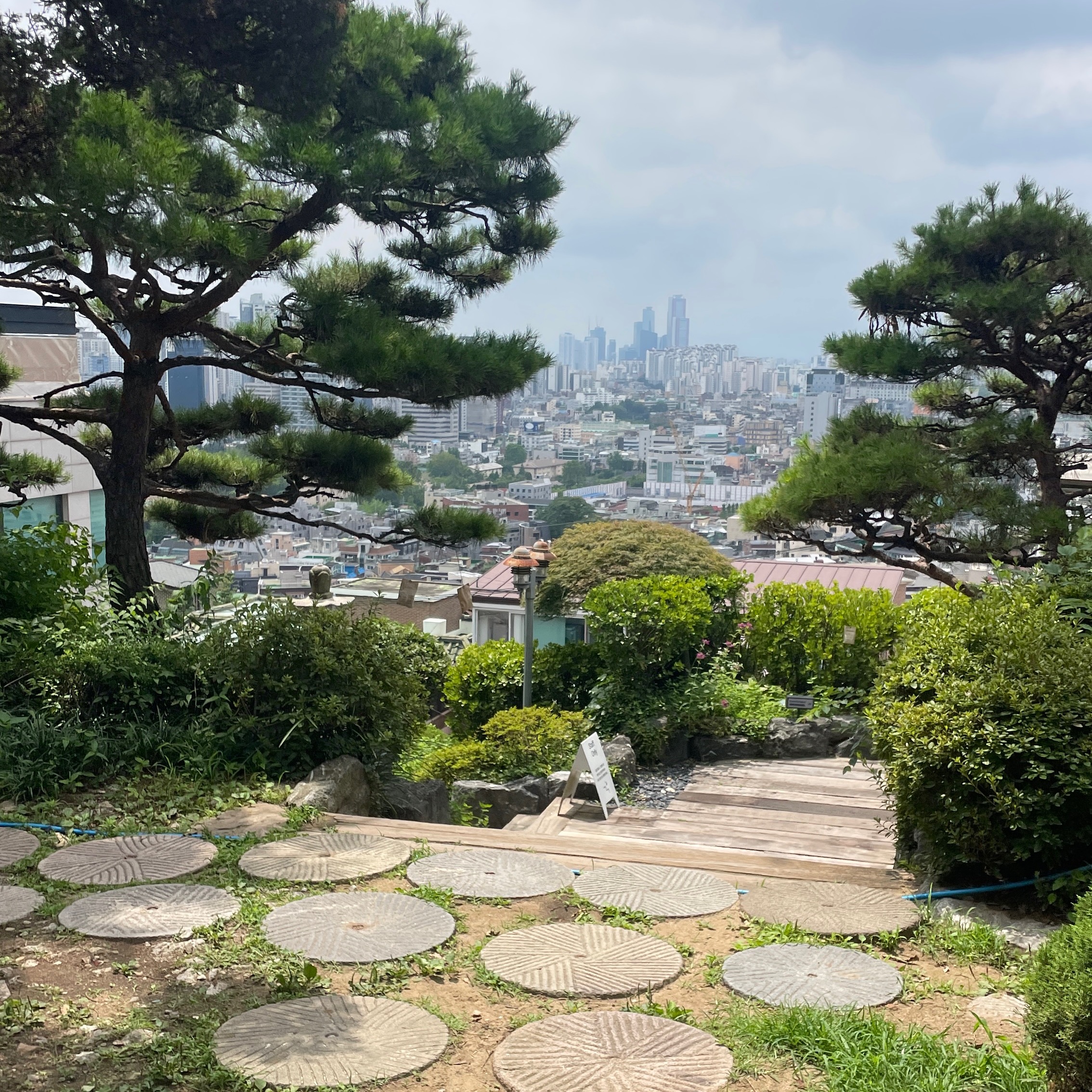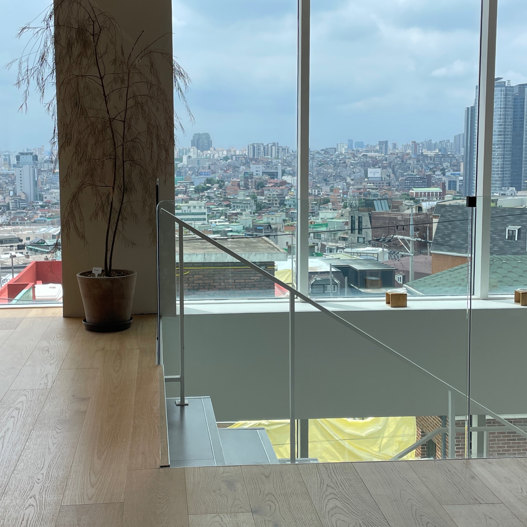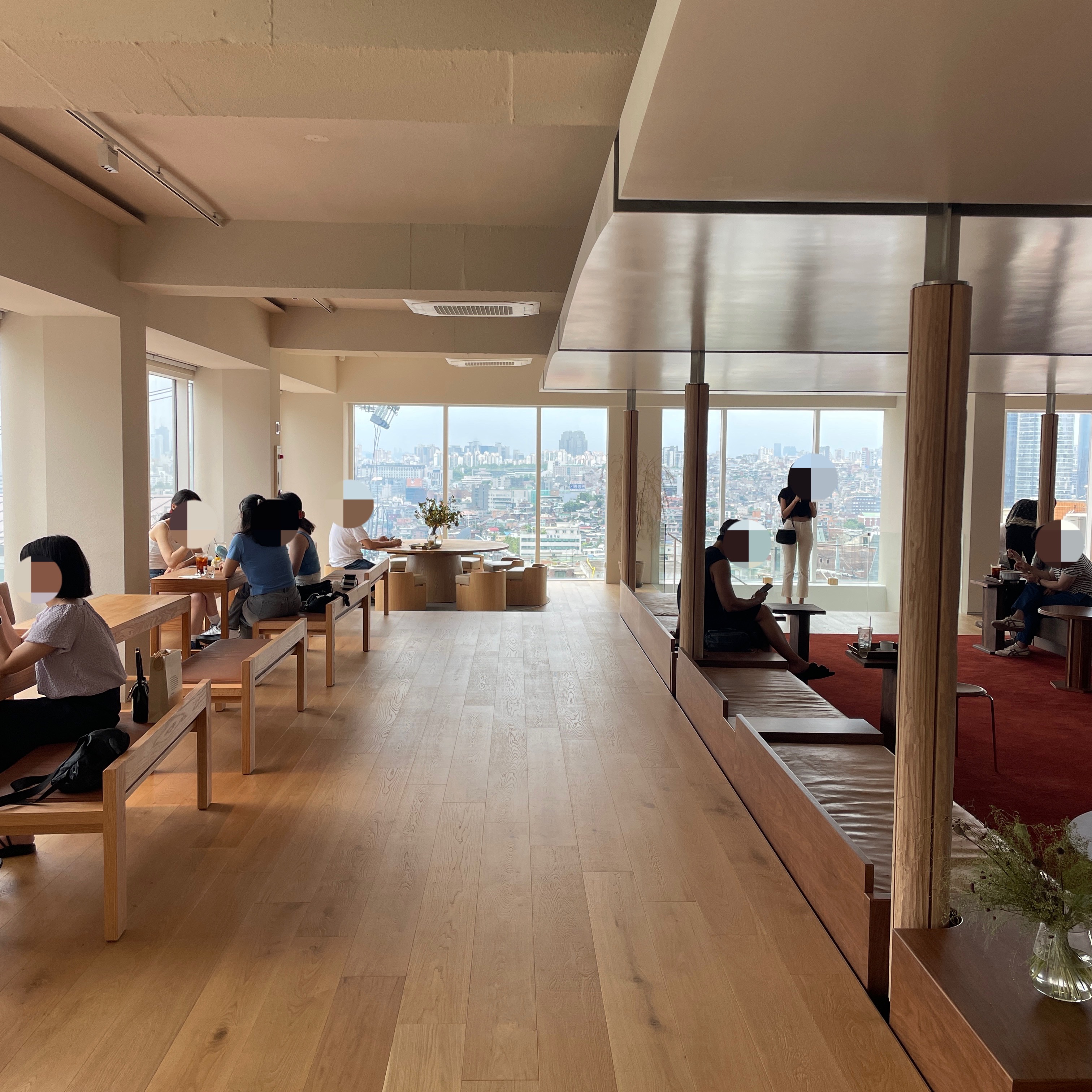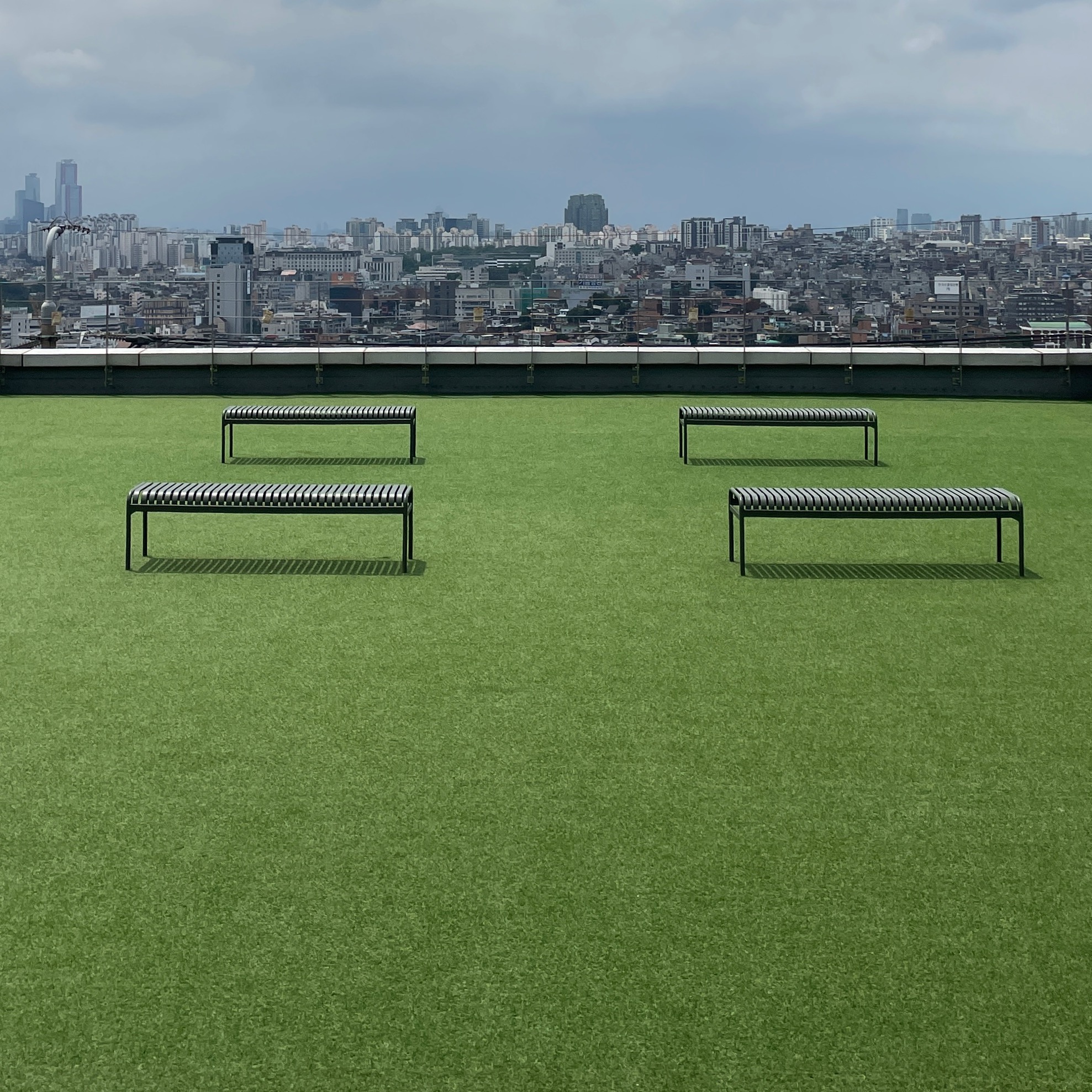 맨 위층은 푸른 인조 잔디에 미니멀하고 깔끔한 벤치가 배치되어 있고 서울의 멋진 전경을 내려다볼 수 있다.