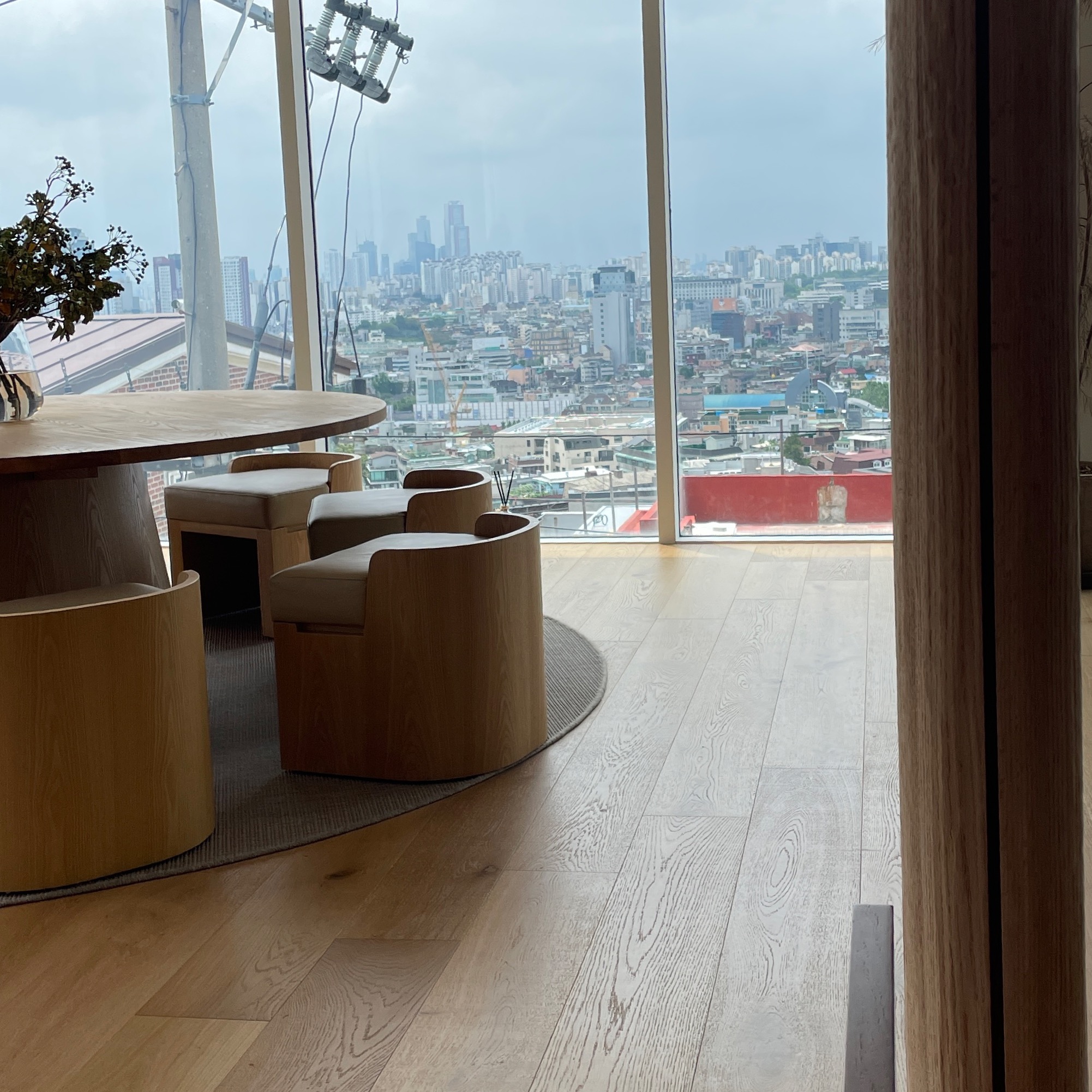 탁 트인 전경과 우드와 레드계열의 고급스러우면서 미니멀힌 인테리어가 정말 멋졌다.