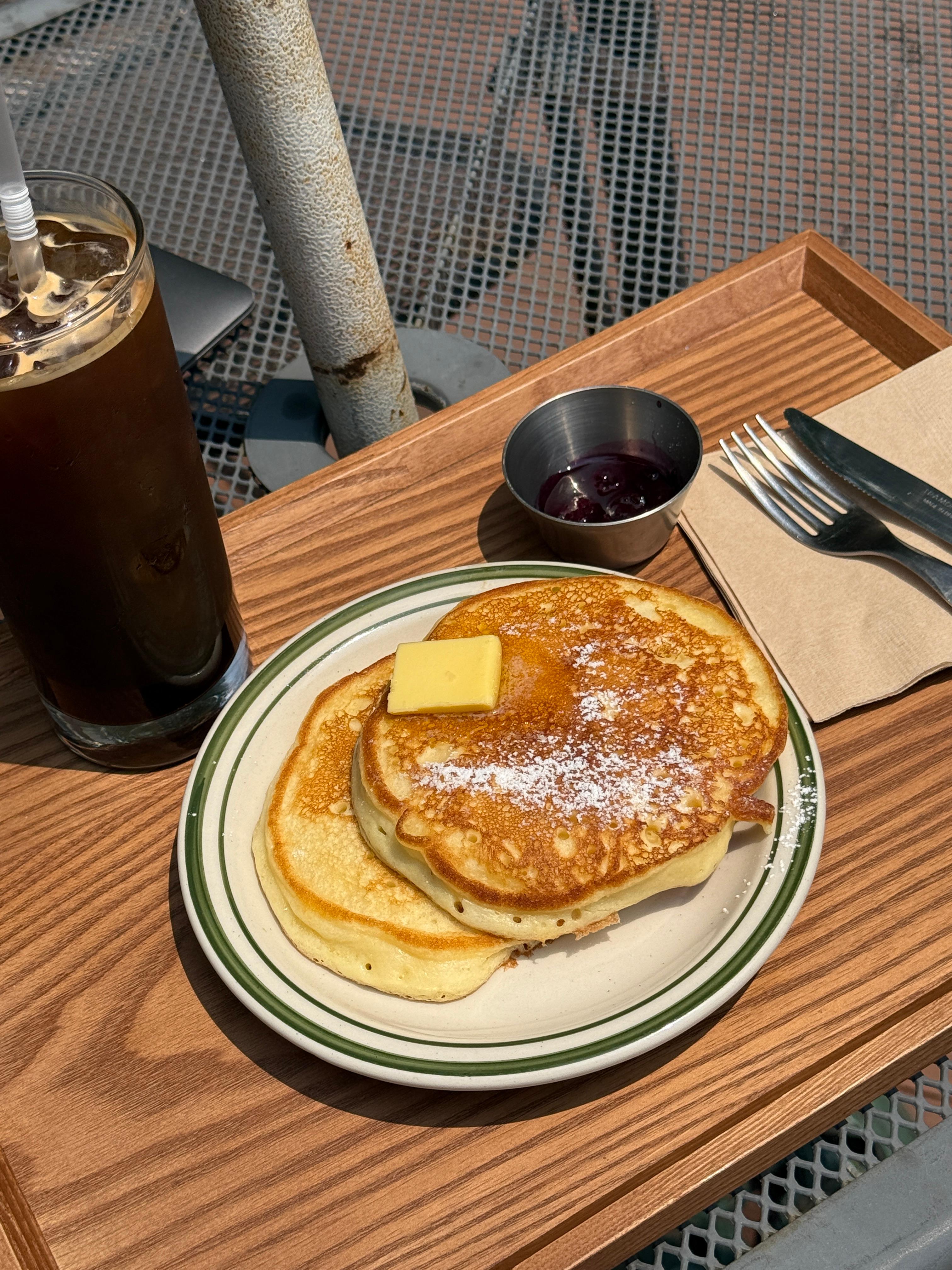 버터팬케이크는 2장, 블루베리 콩포트와 함께 나왔다 :)