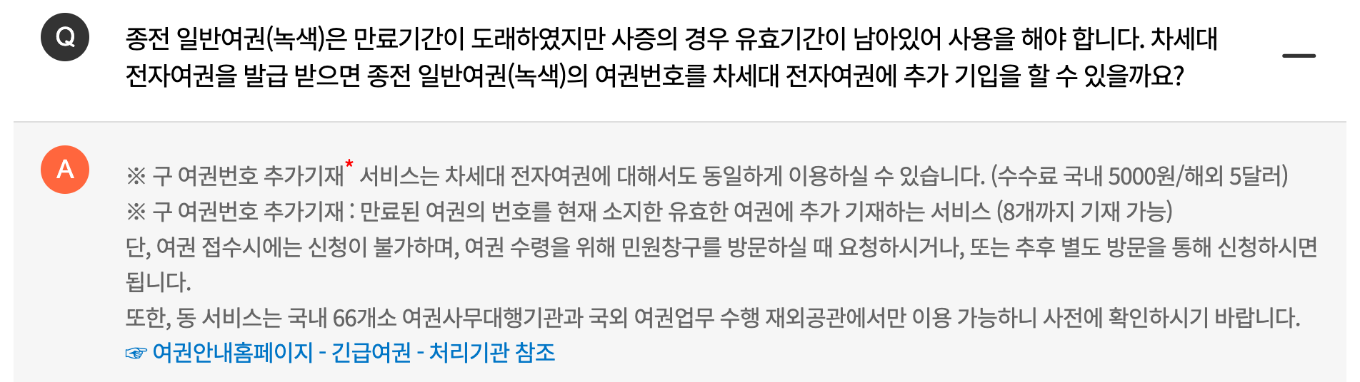 1) 새 여권 수령할 때 이전 여권번호를 차세대 전자여권에 추가 기입 요청함. (10/26)