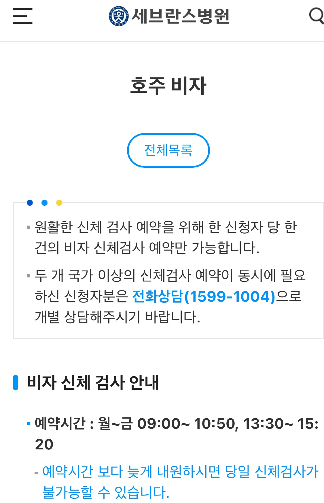 세브란스 병원은 온라인에서 호주 비자용 신체검사 예약하기 쉽게 링크가 있어서 바로 예약할 수 있었다.